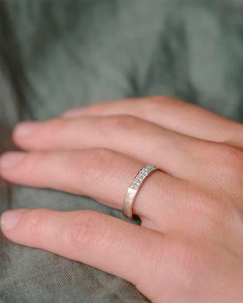 Jeder Ring kann individuell angepasst werden: in der Breite und Stärke ebenso wie beim Steinbesatz, bei der Goldfarbe oder der Oberfläche.