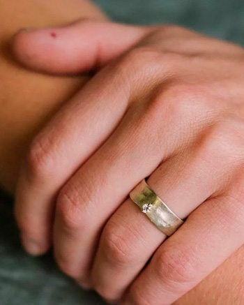 Jeder Ring kann individuell angepasst werden: in der Breite und Stärke ebenso wie beim Steinbesatz, bei der Goldfarbe oder der Oberfläche.