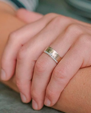 Jeder Ring kann individuell angepasst werden: in der Breite und Stärke ebenso wie beim Steinbesatz, bei der Goldfarbe oder der Oberfläche.
