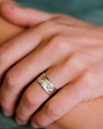 Jeder Ring kann individuell angepasst werden: in der Breite und Stärke ebenso wie beim Steinbesatz, bei der Goldfarbe oder der Oberfläche.
