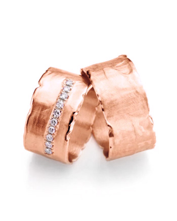 Jeder Ring kann individuell angepasst werden: in der Breite und Stärke ebenso wie beim Steinbesatz, bei der Goldfarbe oder der Oberfläche.