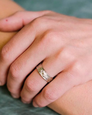 Jeder Ring kann individuell angepasst werden: in der Breite und Stärke ebenso wie beim Steinbesatz, bei der Goldfarbe oder der Oberfläche.