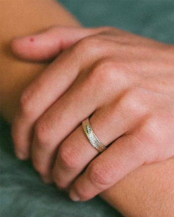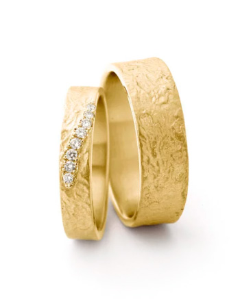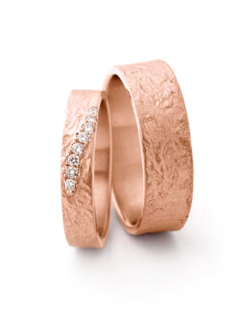 Jeder Ring kann individuell angepasst werden: in der Breite und Stärke ebenso wie beim Steinbesatz, bei der Goldfarbe oder der Oberfläche.