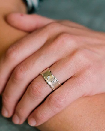 Jeder Ring kann individuell angepasst werden: in der Breite und Stärke ebenso wie beim Steinbesatz, bei der Goldfarbe oder der Oberfläche.